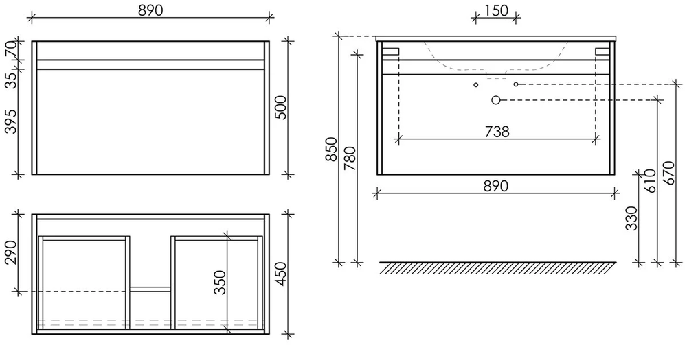 Тумба под раковину Sancos Smart 90, подвесная, белый глянец, SM90W