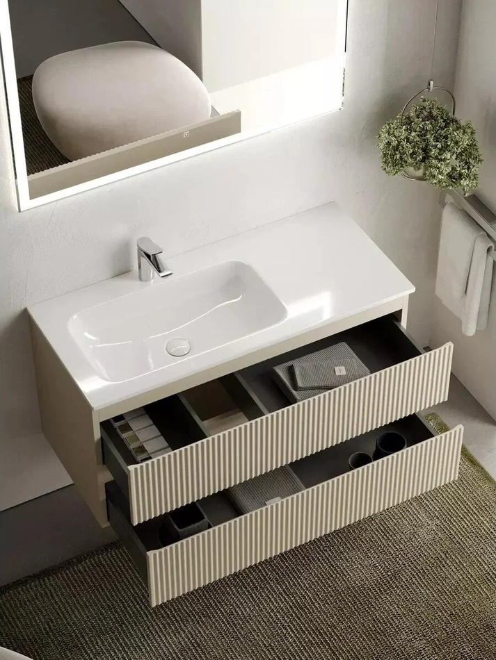 Тумба под раковину Sancos Snob R 100 см подвесная, левая, Beige Soft, SNR100LCE