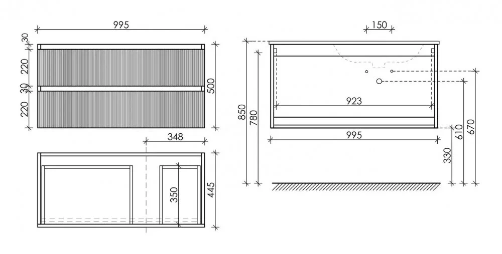 Тумба под раковину Sancos Snob R 100 см подвесная, правая, Doha Soft, SNR100RSM