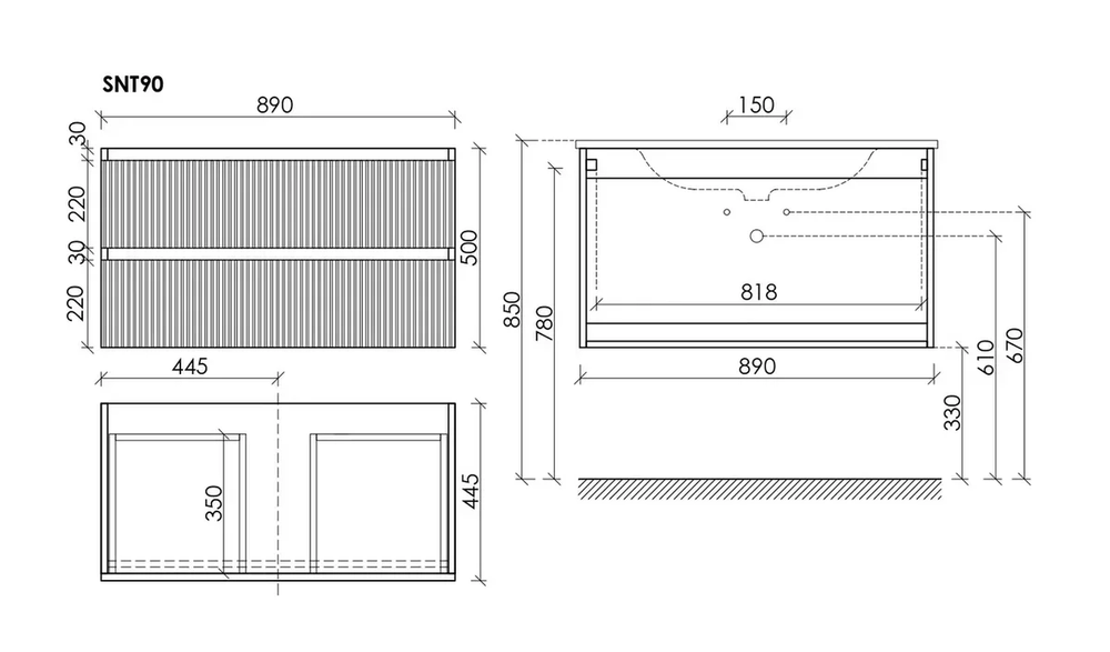 Тумба под раковину Sancos Snob T SNT90SM, 90 см подвесная, Doha Soft