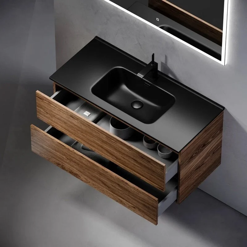 Тумба подвесная Sancos Urban 990х450х550 c двумя ящиками, оснащенными доводчиками скрытого монтажа с системой Soft close (плавного закрывания), c ручкой Gola по всей длине тумбы, дуб чарльстон, арт. UR100ECH