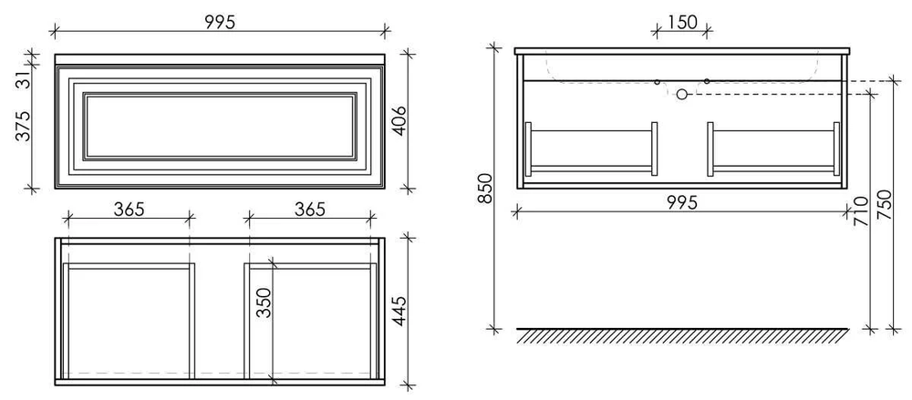 Тумба подвесная SANCOS Very 995х445х406, c одним ящиком оснащенным доводчиками скрытого монтажа с системой Soft close (плавного закрывания)