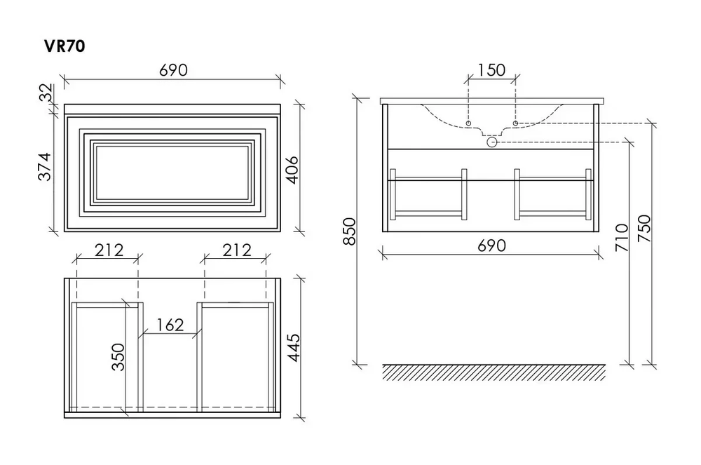 Тумба под раковину Sancos Very VR70CE, 70 см подвесная, Beige Soft