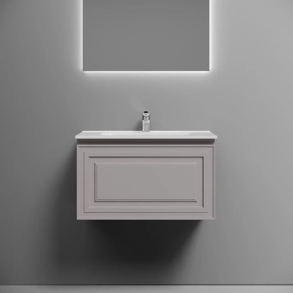 Тумба подвесная Very c одним ящиком оснащенным доводчиками скрытого монтажа с системой плавного закрывания. Каркас и фасад тумбы выполнен из МДФ, покрытие ПВХ - пленка в цвете «Doha Soft».