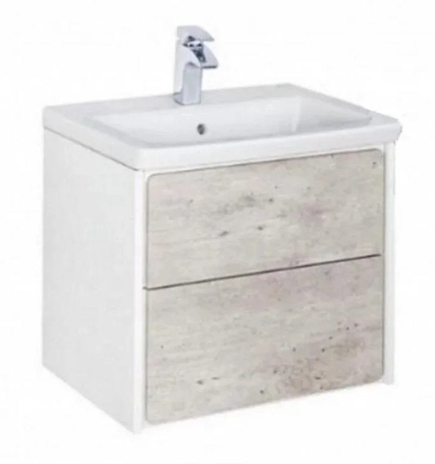 Тумба под раковину Монтаж: подвесной Размер (ШxГxВ): 60x44x60 см Выдвижные ящики с механизмом открывания Push Материал: МДФ Форма: прямоугольная Цвет: бетон, белый глянцевый
