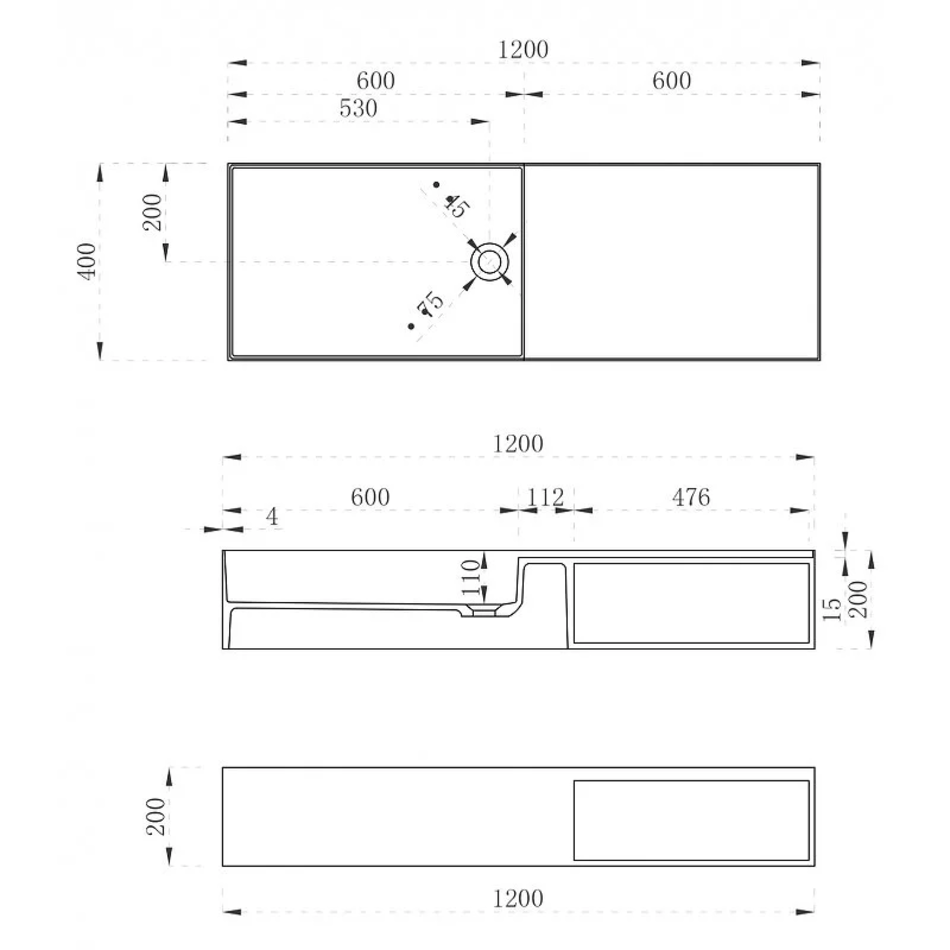 Тумба с раковиной Abber Stein, 120 см, подвесная, цвет белый матовый, AS2649-1.2