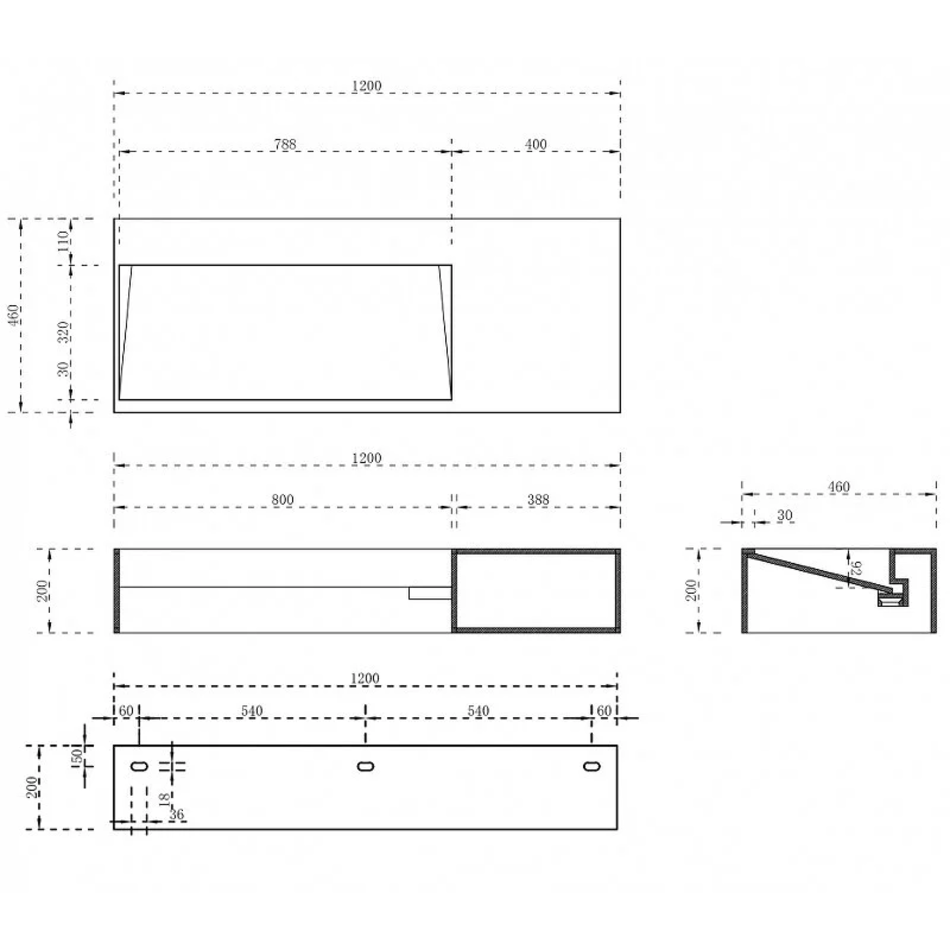 Габариты (ШхВхГ): 1200х200х460 мм.