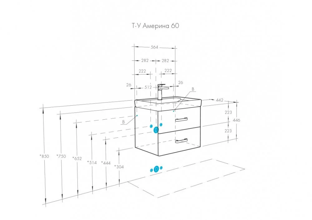 Тумба с раковиной Акватон АМЕРИНА 60, 1A1354K1AM010, белая