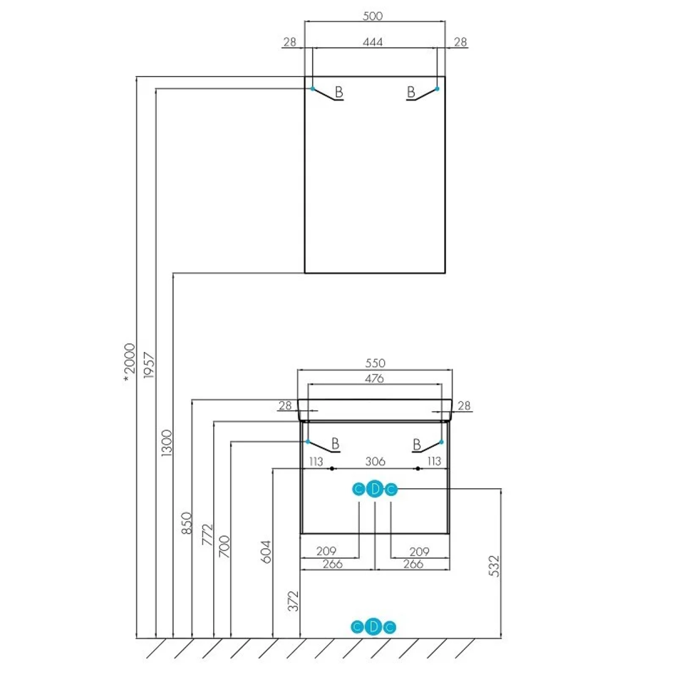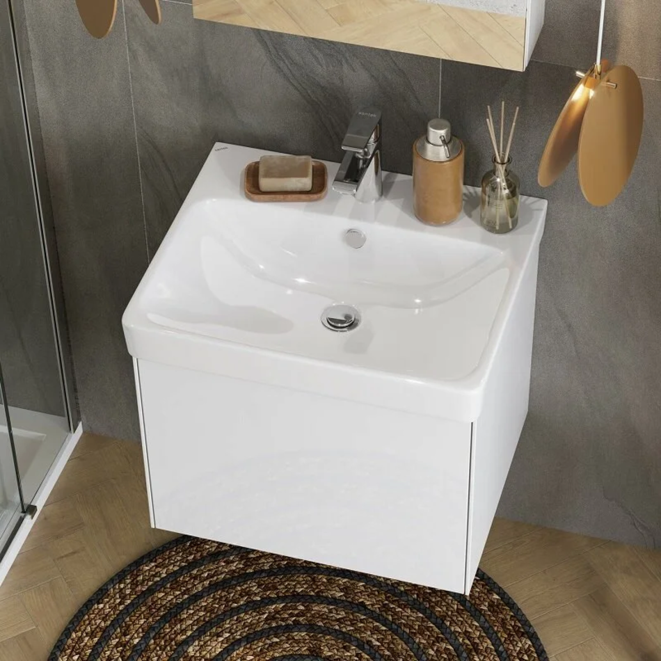 Тумба с раковиной Акватон Асти 55 см подвесная, белый матовый, белый глянцевый, 1A2631K0AX2B0