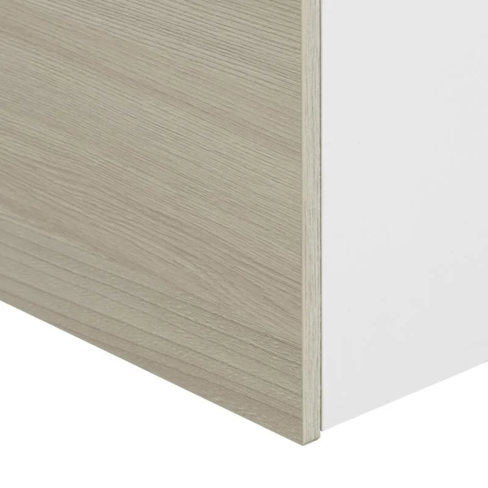 Белые фасады тумбы под раковину Асти 70 идеально сочетаются с боковыми стенками, выполненными в сдержанной древесной отделке Ясень Шимо Светлый: особенно органично она будет смотреться в интерьерах с отсылками к скандинавской эстетике.