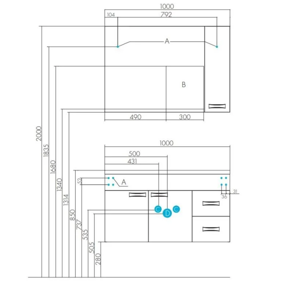 Лаконичная прямоугольная модель, с изящной ручкой и удобной прямоугольной раковиной из литого мрамора. Зеркало оснащено подсветкой и системой ANTI-STEAM. В тумбе за распашными фасадами – ниша для больших предметов, а справа два выдвижных ящика.
