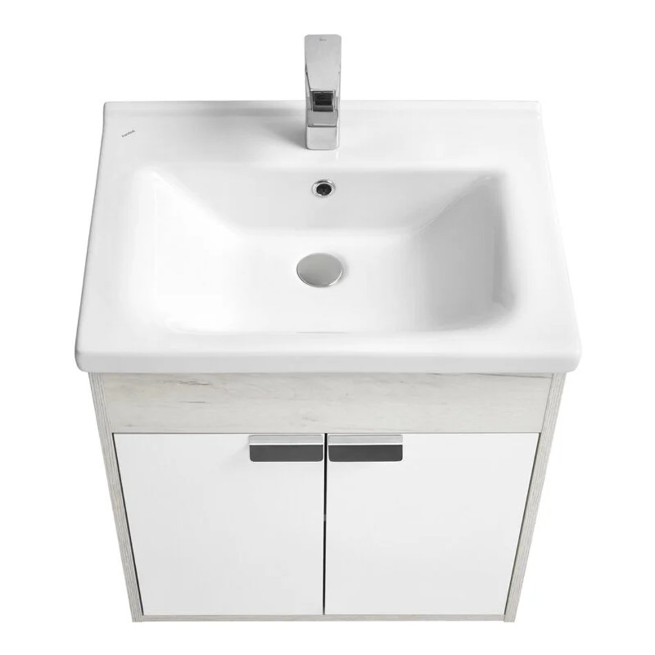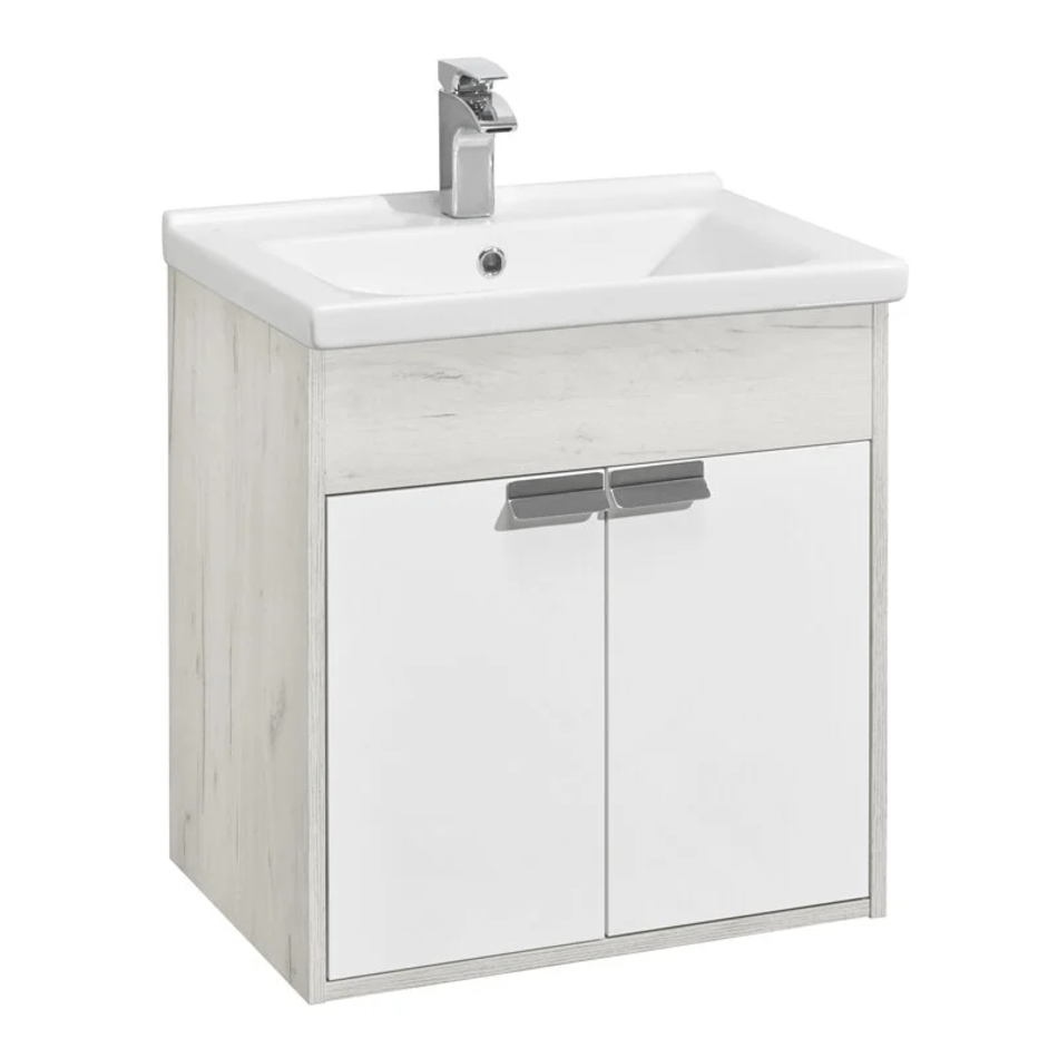 Тумба с раковиной Акватон Флай 60 см подвесная/напольная, белый/дуб крафт, 1A2373K0FAX10