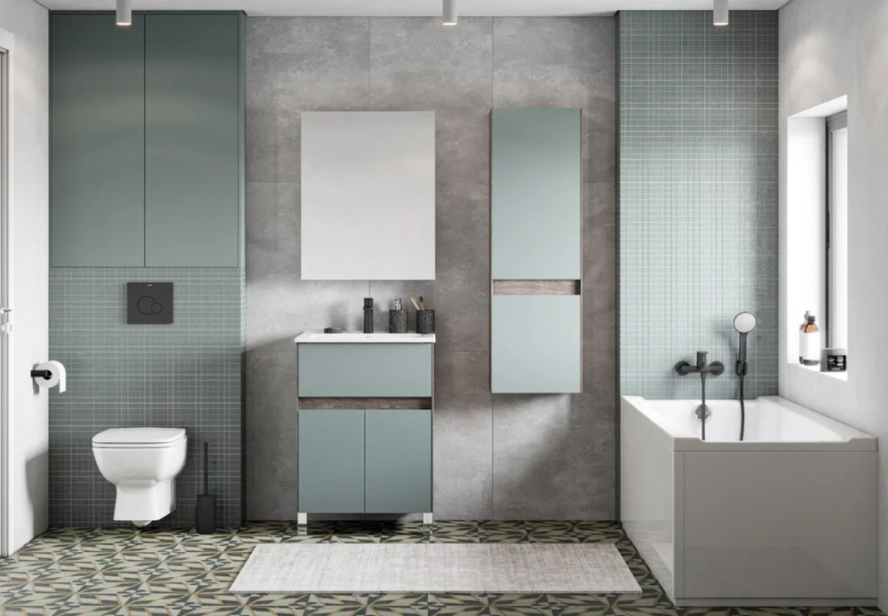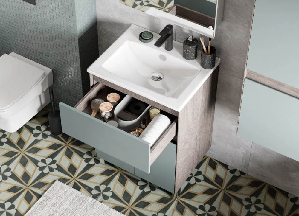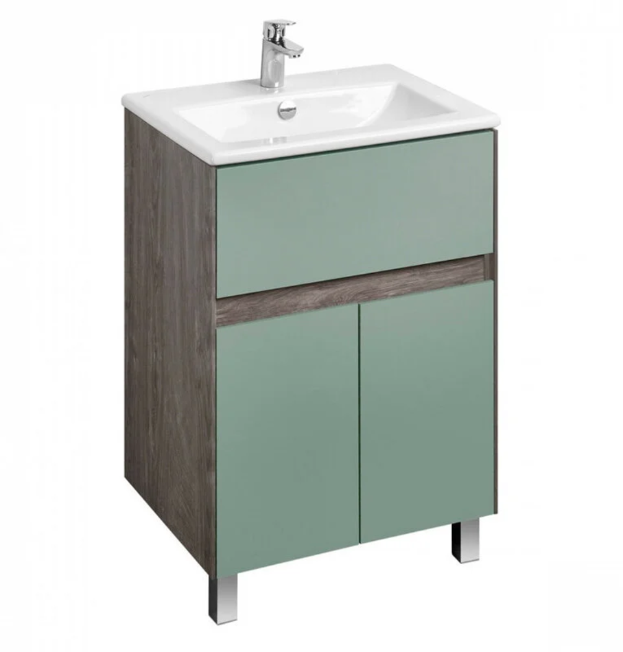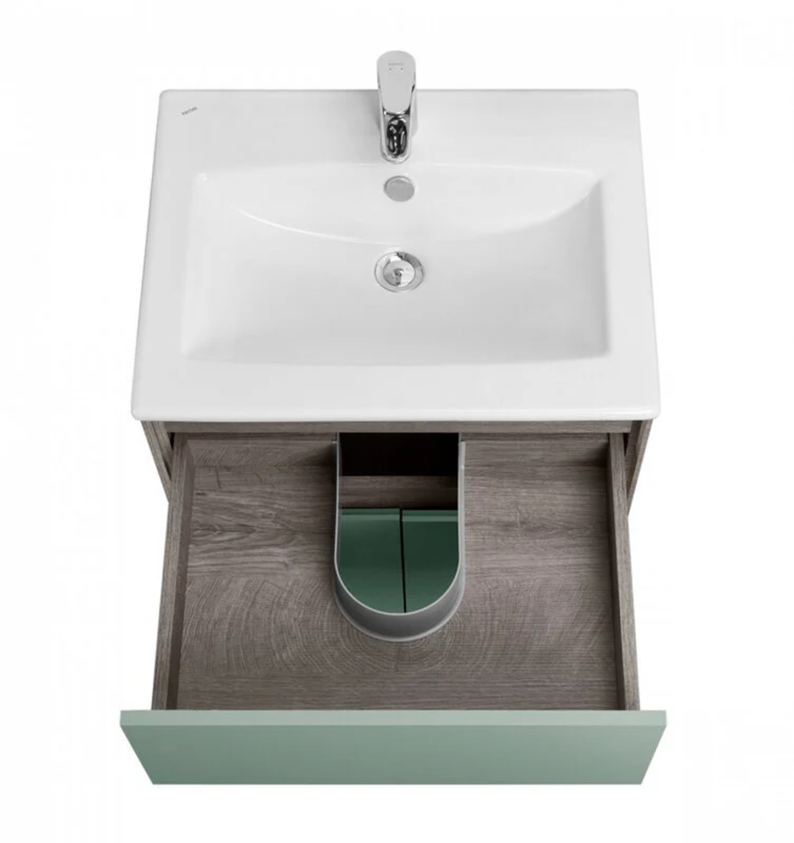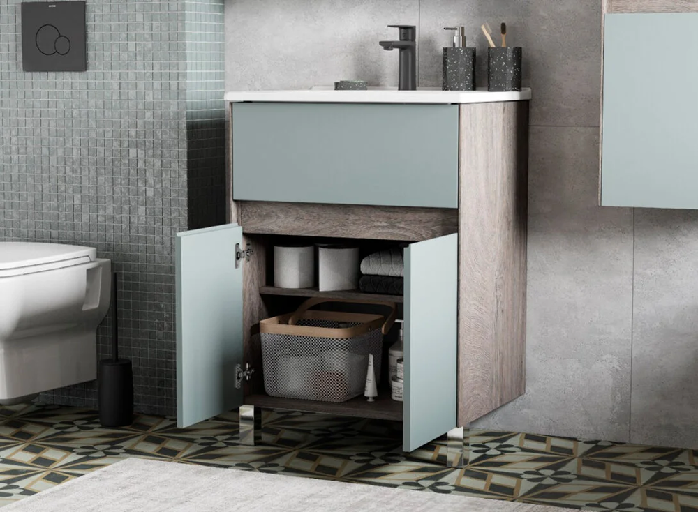 Тумба с раковиной Акватон Форест 60 см подвесная/напольная, дуб рошелье/сумеречный голубой, 1A2782K0FR9C0