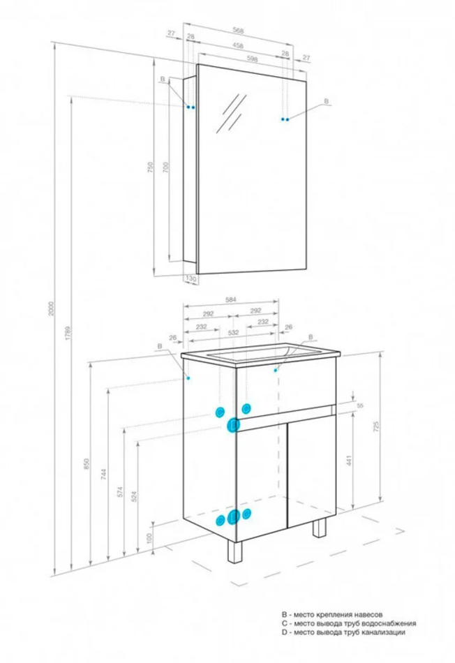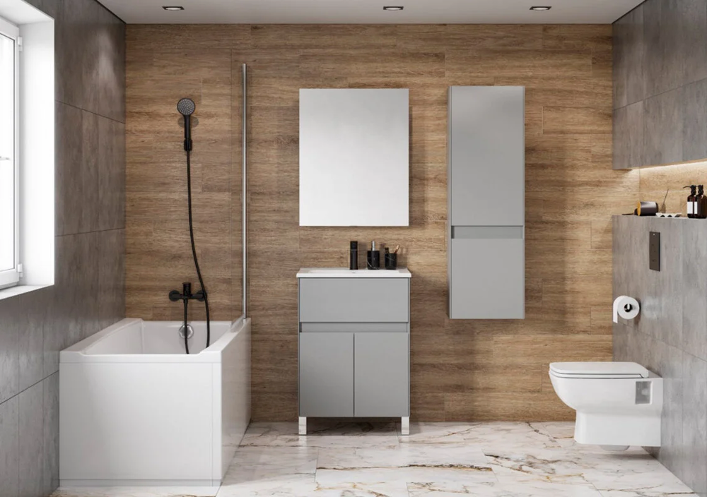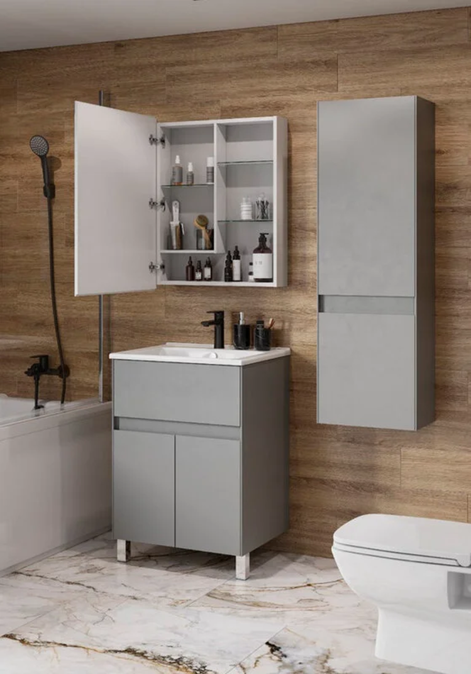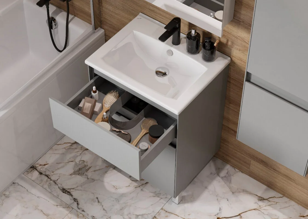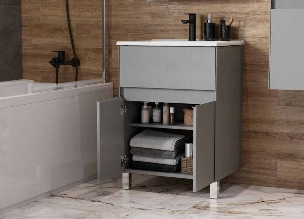 Тумба с раковиной Акватон Форест 60 см подвесная/напольная, туманный серый, 1A2782K0FR4D0