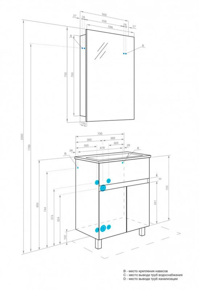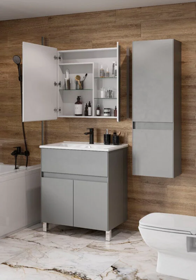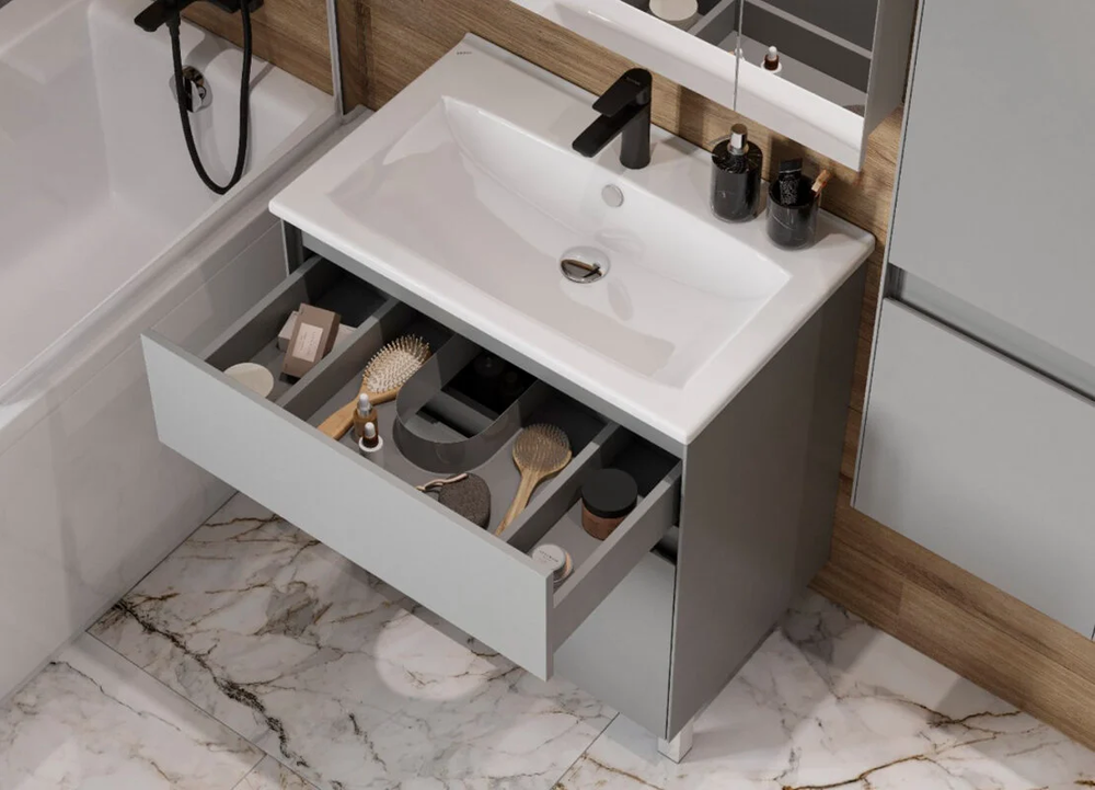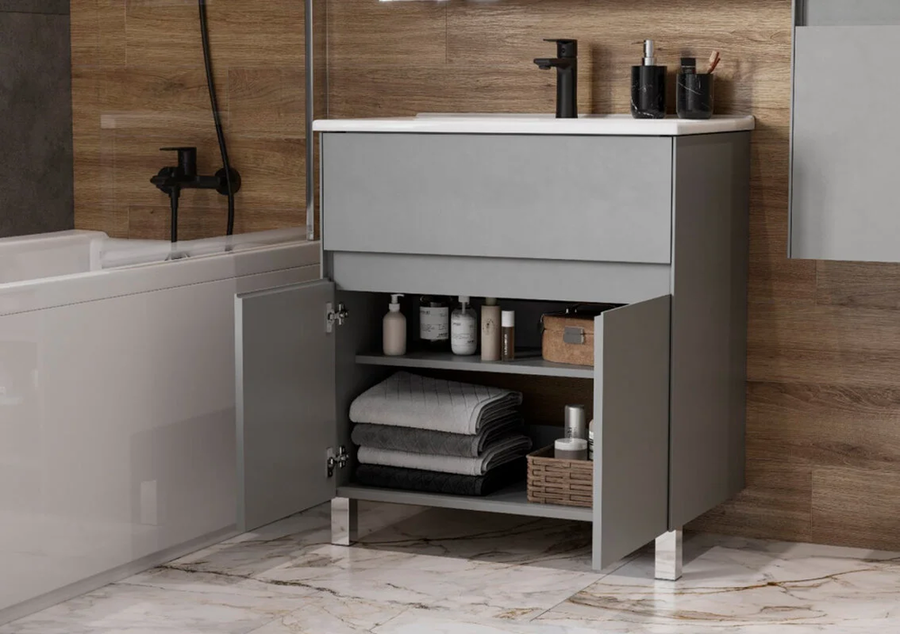 Тумба с раковиной Акватон Форест 75 см подвесная/напольная, туманный серый, 1A2783K0FR4D0