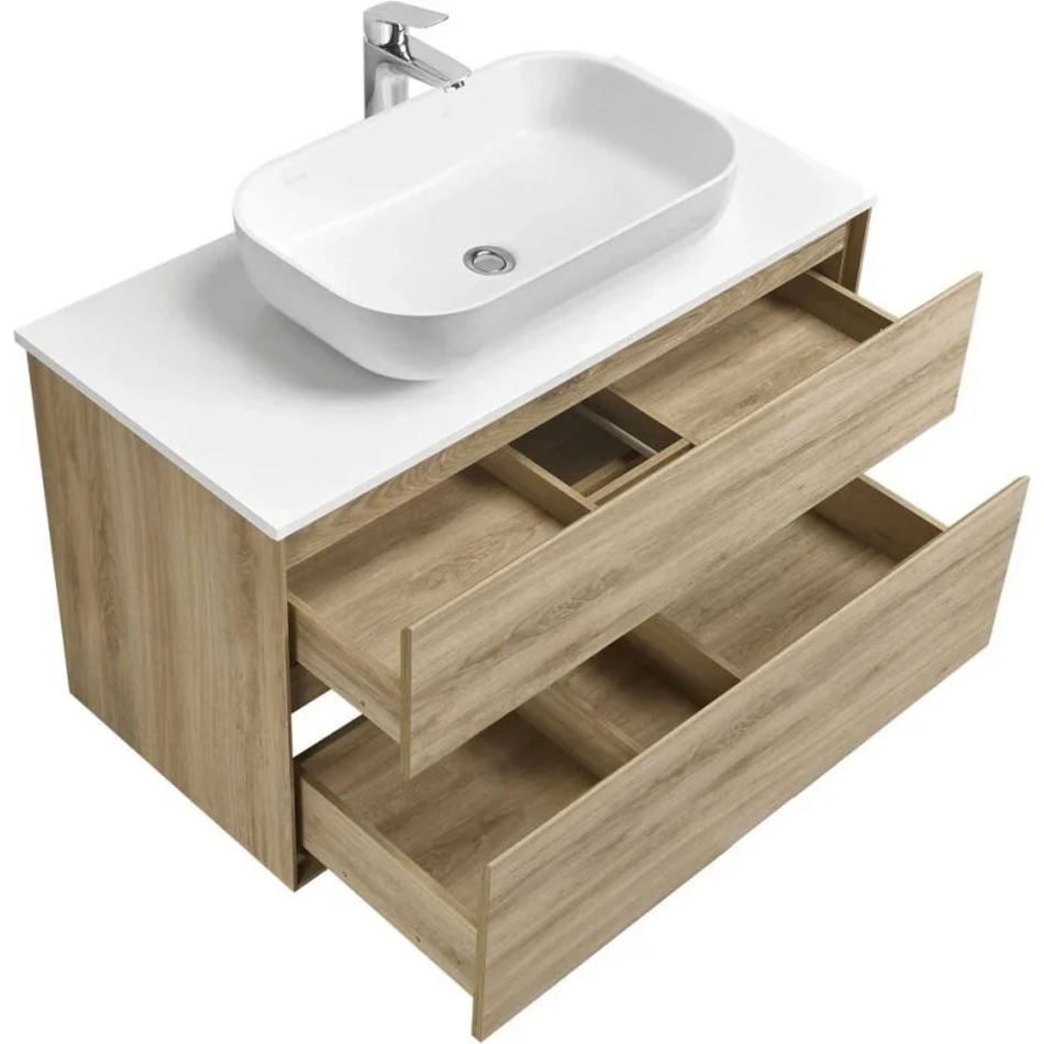 Тумба с раковиной Акватон Либерти 100 см, дуб эльвезия, раковина накладная Лола 60, столешница белая, 1A2796К3LY010