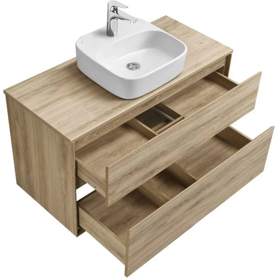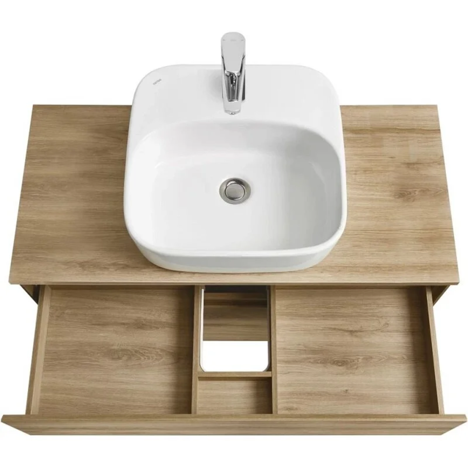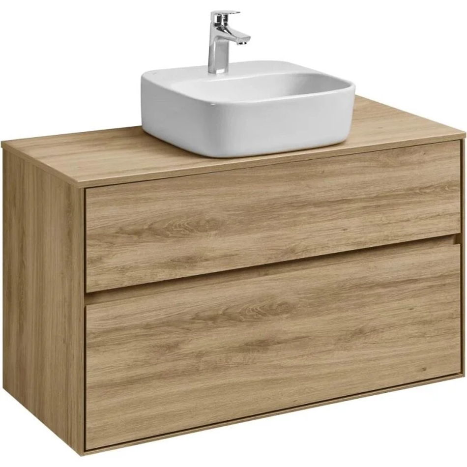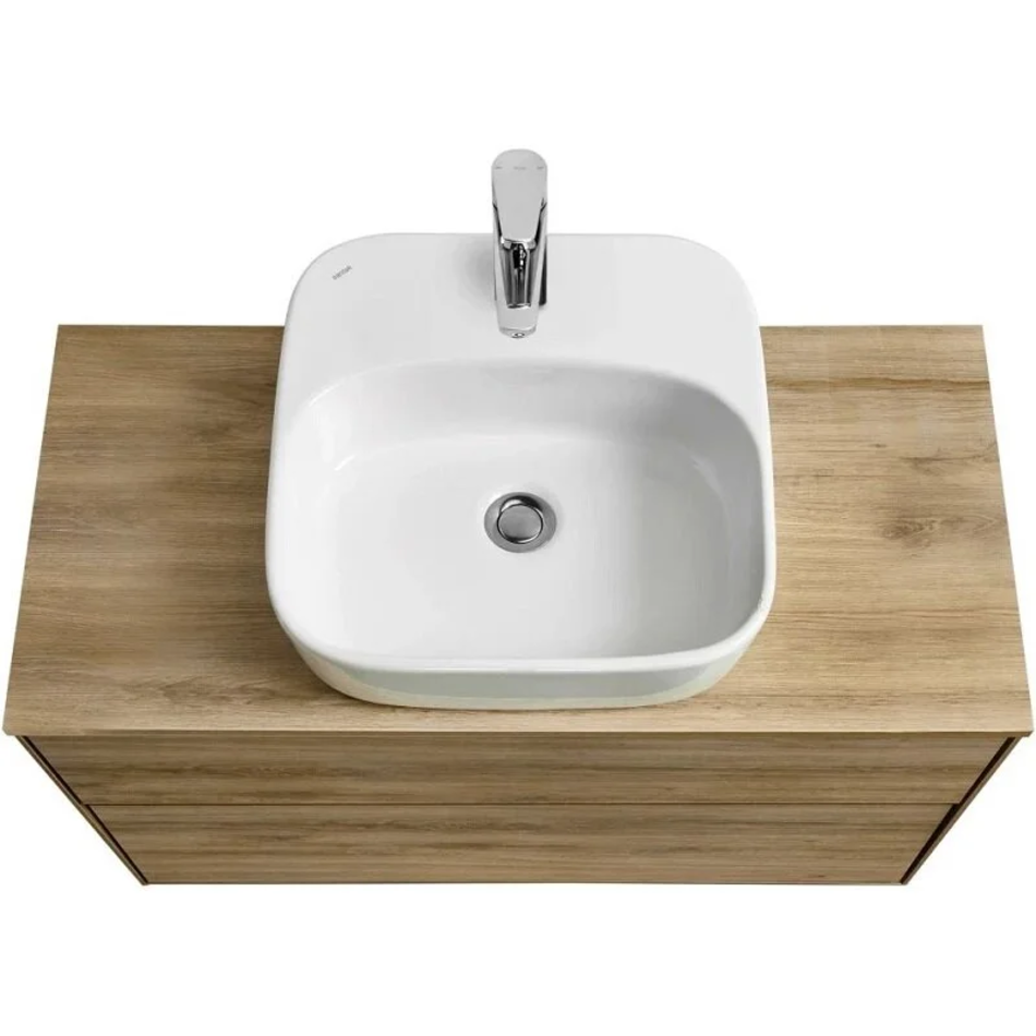 Тумба с раковиной Акватон Либерти 100 см, дуб эльвезия, раковина накладная Одри 42 х 42, Soft, столешница дуб эльвезия, 1A2796К4LYC70