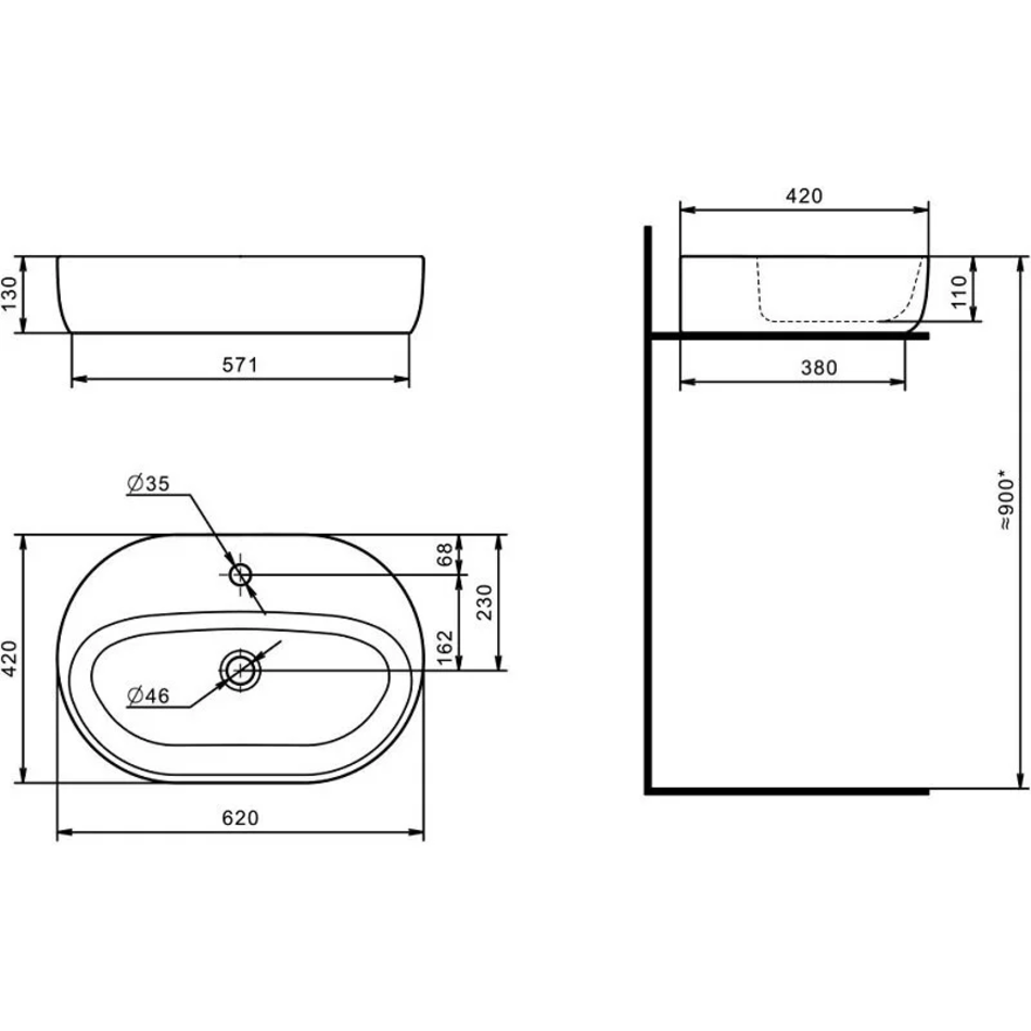 Раковина: Одри Round 62 x 42 см, накладная, фарфор, белый, 1WH501710