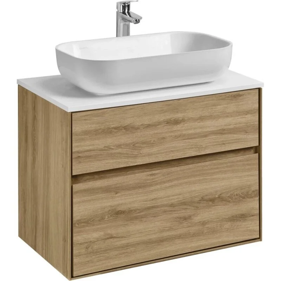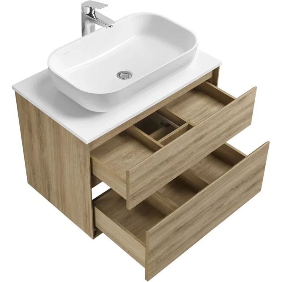 Тумба с раковиной Акватон Либерти 75 см, дуб эльвезия, раковина накладная Лола 60, столешница белая, 1A2795К3LY010