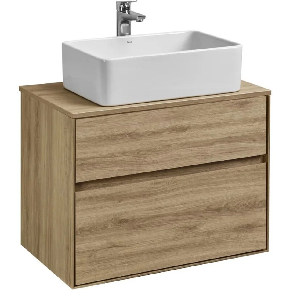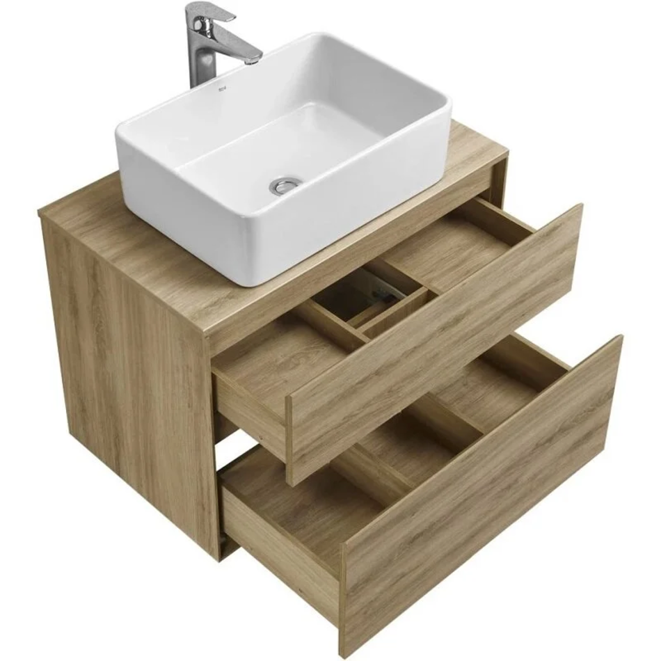 Тумба с раковиной Акватон Либерти 75 см, дуб эльвезия, раковина накладная Mila 50 x 35, столешница дуб эльвезия, 1A2795К1LYC70