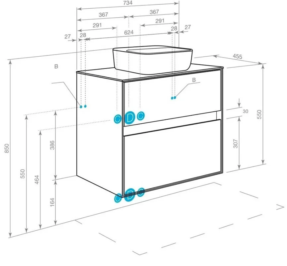 Размер без раковины: 73.4 x 45.6 x 55 см