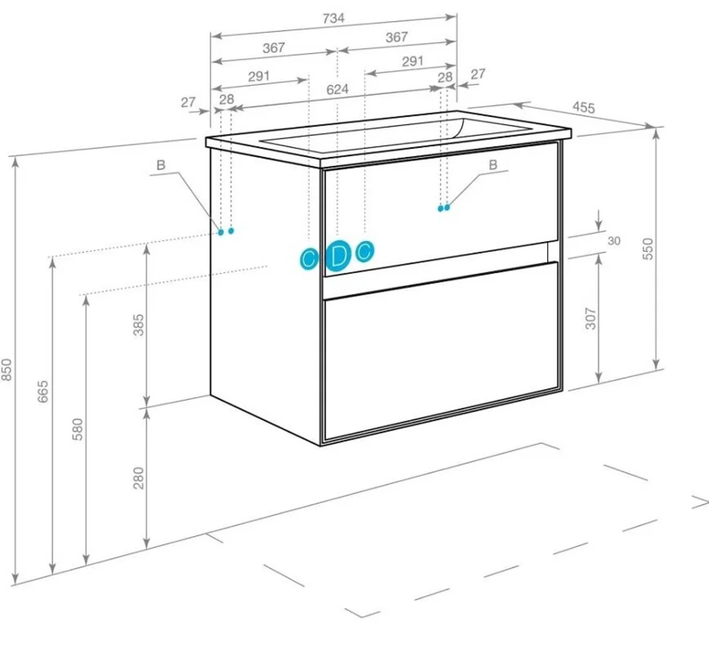 Размер без раковины: 73.4 x 45.6 x 55 см