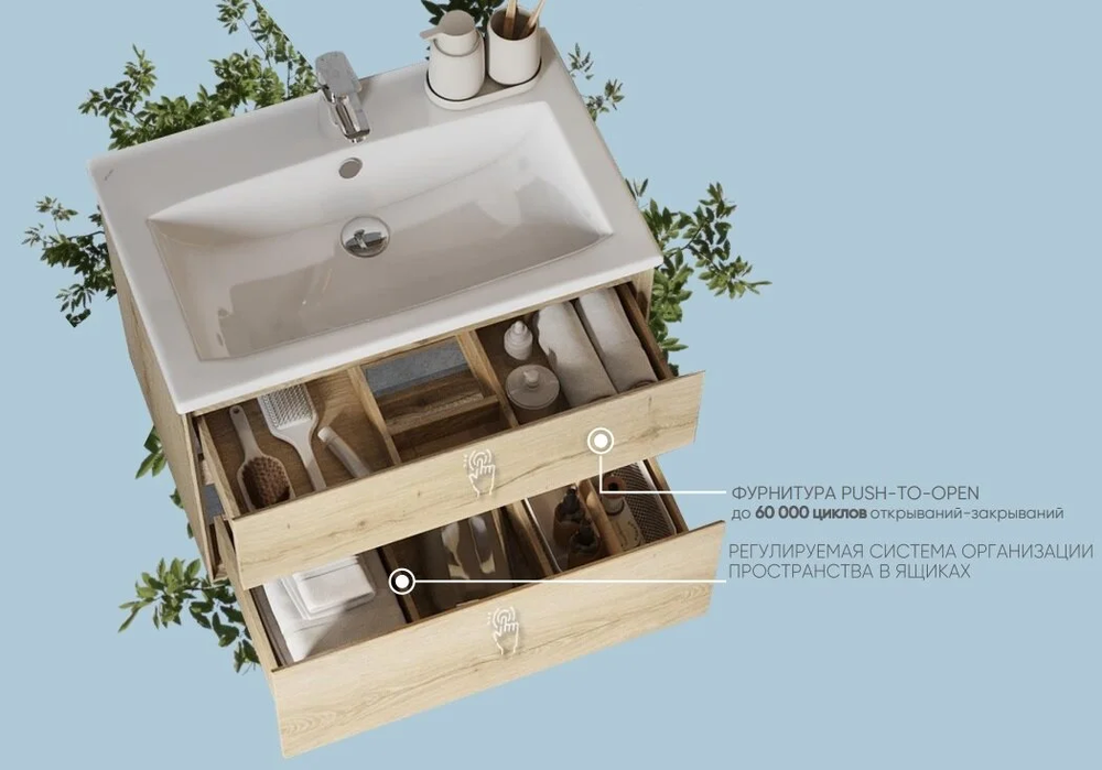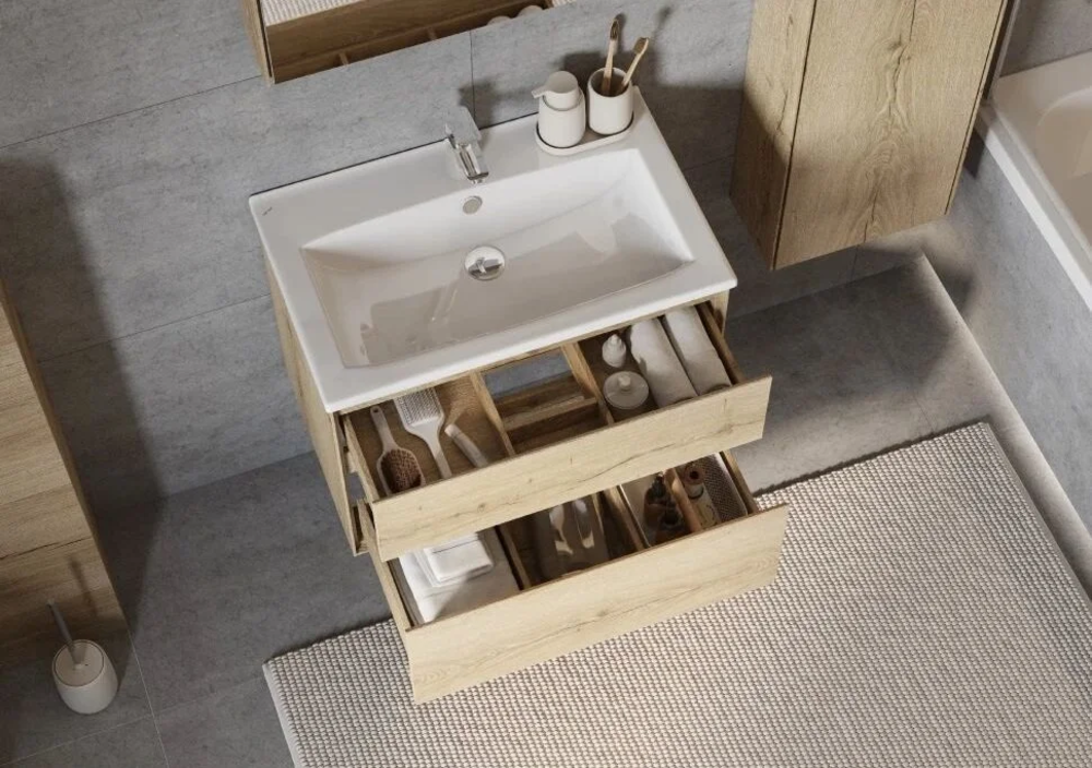 Тумба с раковиной Акватон Либерти 75 см, дуб эльвезия, раковина Элина 75, 1A2795К0LYC70