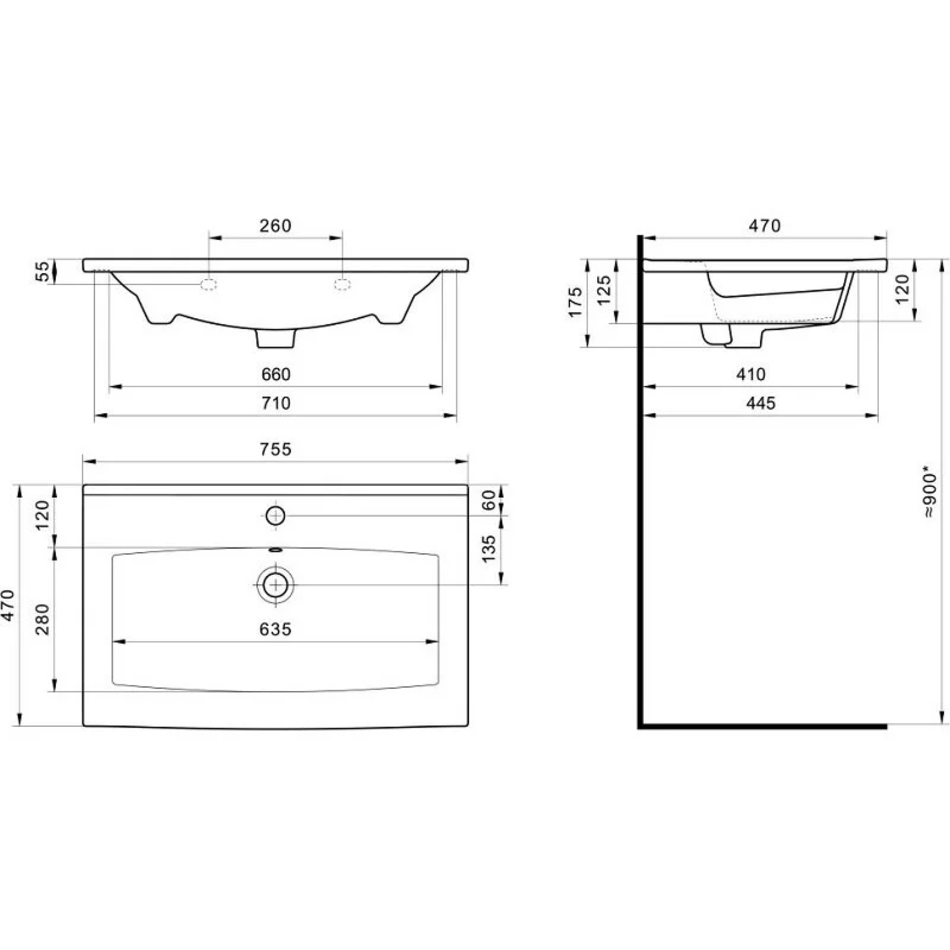 Раковина: Элина 75 см, фарфор, белый, 1WH501619