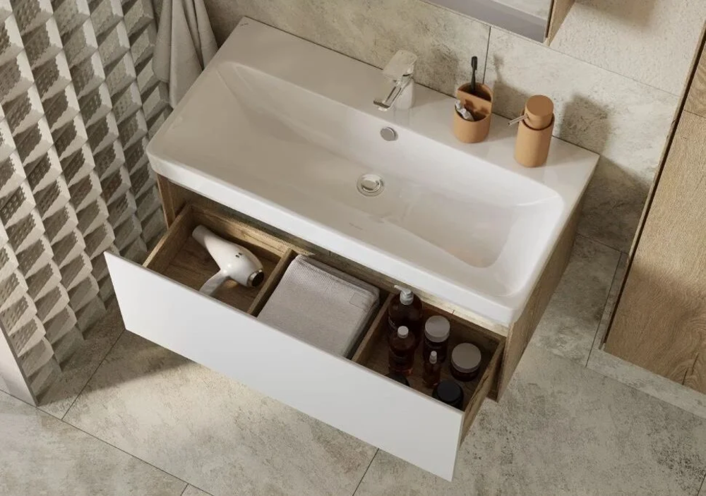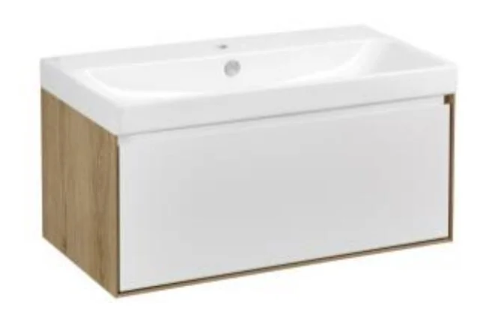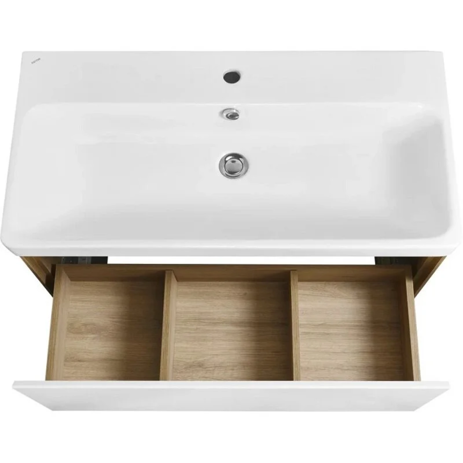 Тумба с раковиной Акватон Либерти 90 см, дуб эльвезия, белый, раковина Адриана 90, 1A2799К0LYC70