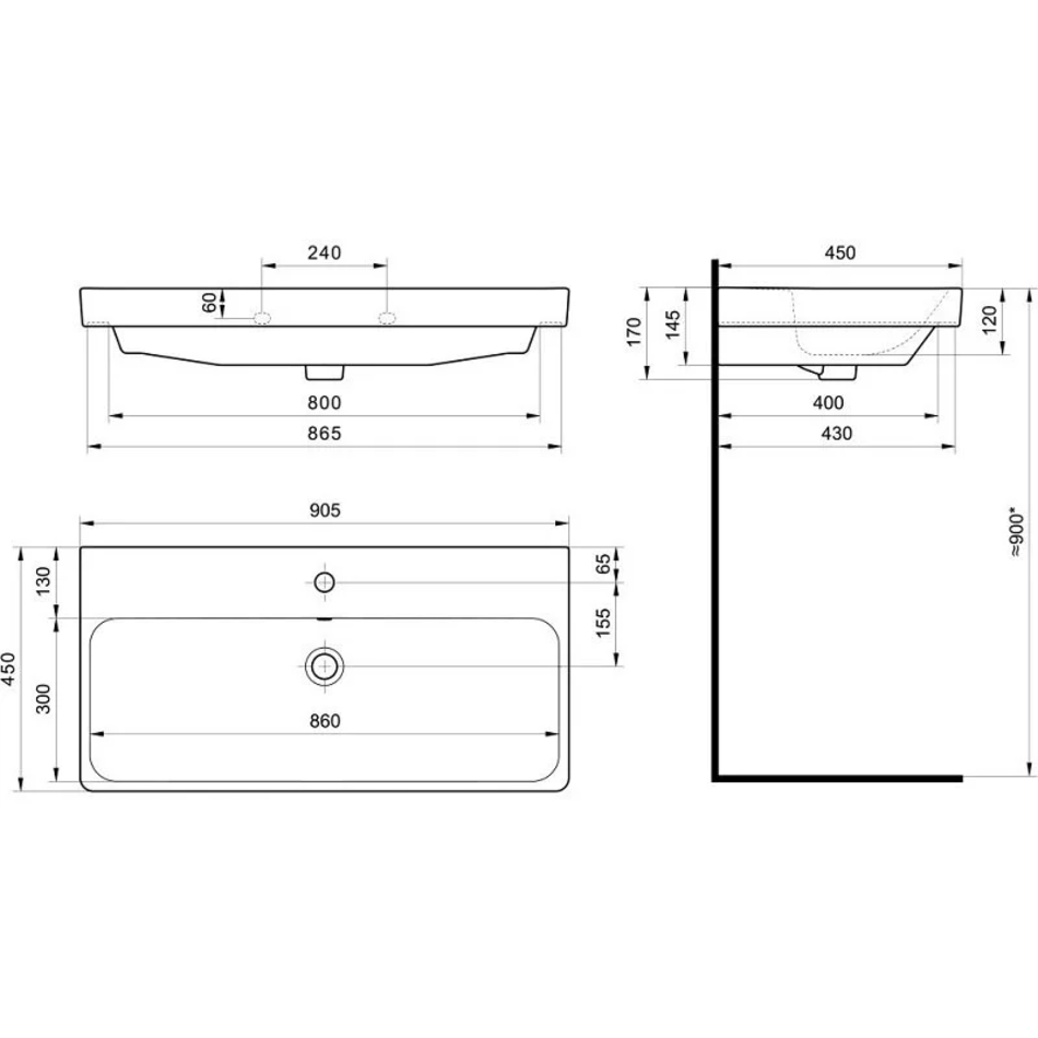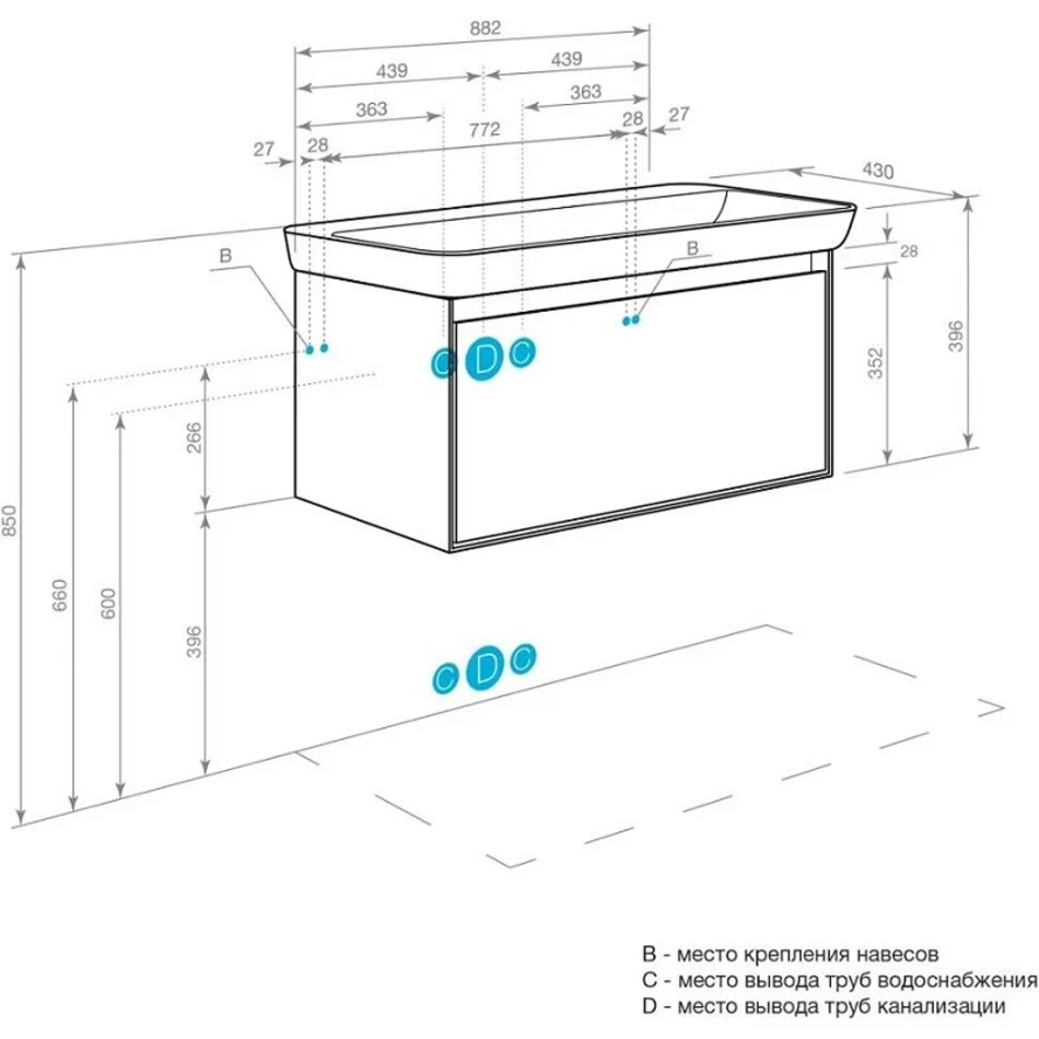 Размер без раковины: 88.2 x 43 x 39 см