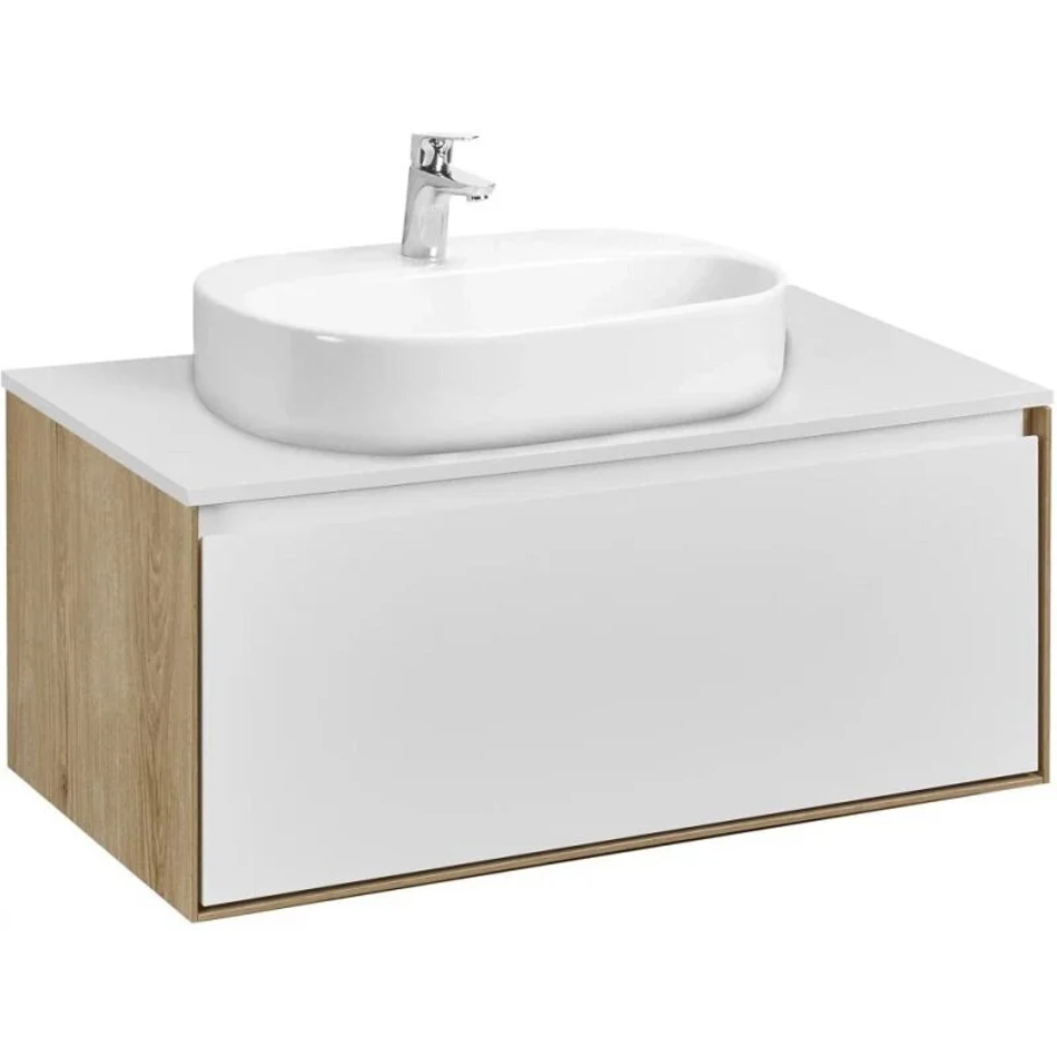 Тумба с раковиной Акватон Либерти 90 см, дуб эльвезия, белый, раковина накладная Одри Round 62 x 42, столешница белая, 1A2799К5LY010