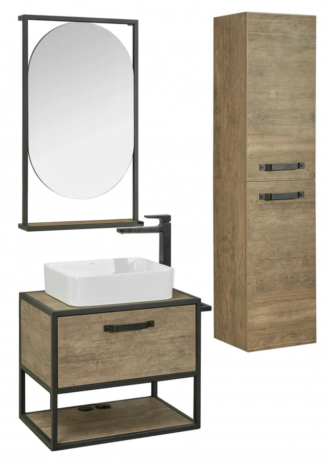Тумба с раковиной Акватон Лофт Фабрик 65 см подвесная, раковина квадратная, дуб кантри, 1A2423K2LTDY0