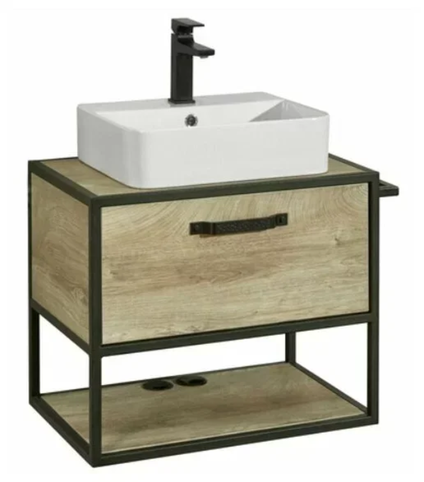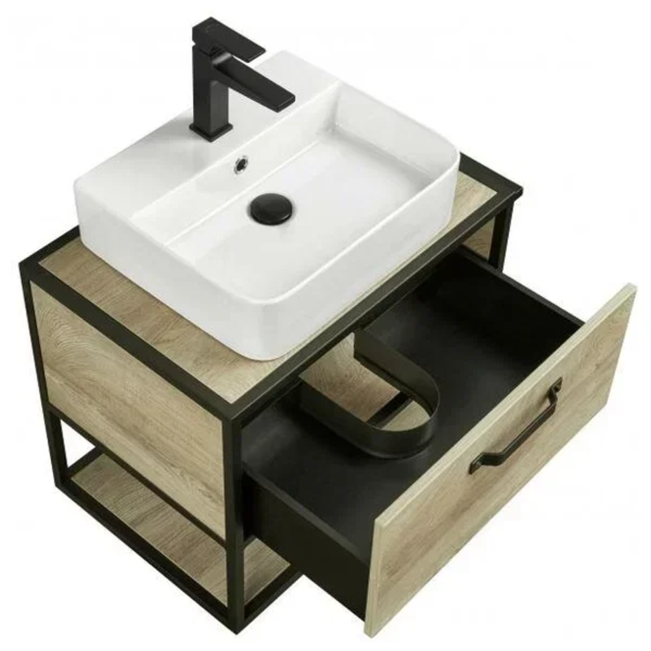 Тумба с раковиной Акватон Лофт Фабрик 65 см подвесная, раковина квадратная, дуб эндгрейн, 1A2423K2LTDU0