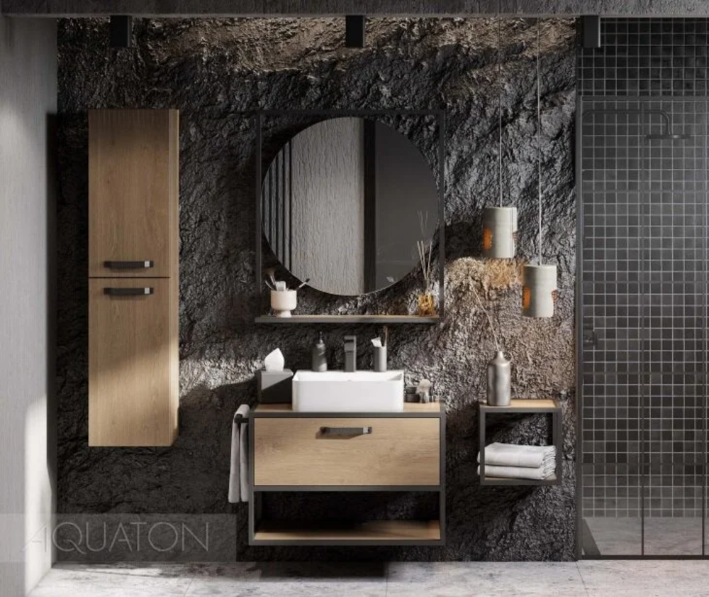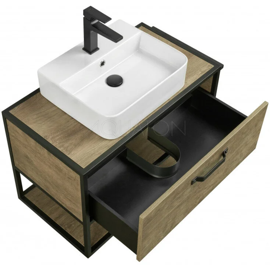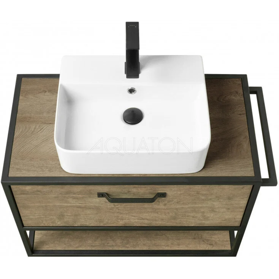Тумба с раковиной Акватон Лофт Фабрик 80 см подвесная, раковина квадратная, дуб кантри, 1A2424K2LTDY0