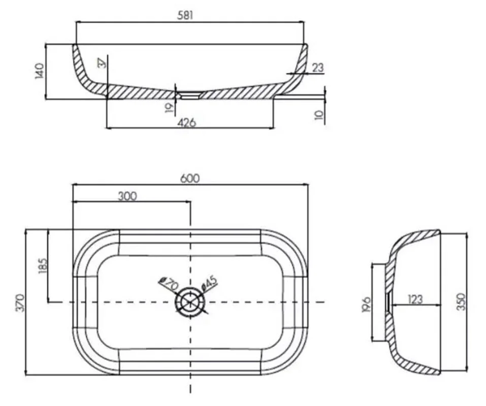 Размер раковины: 60 x 37 х 14 см