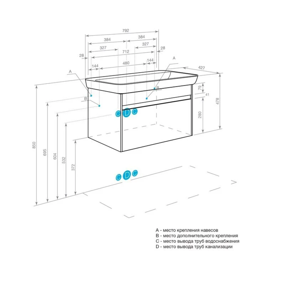 Раковина (ВxШxГ, мм): 170 x 80 x 450