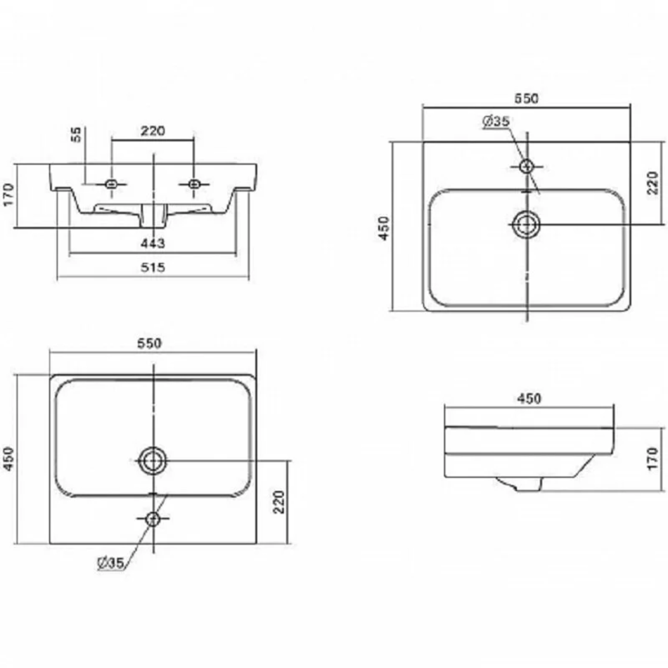 Тумба с раковиной Акватон Марти 55 см, подвесная, белый, 1A2632K0MY010
