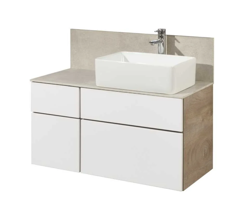 Тумба с раковиной Акватон Мишель 100 см подвесная, цвет дуб эндгрейн/белый, столешница керамогранит, 1A2773K2MIX40