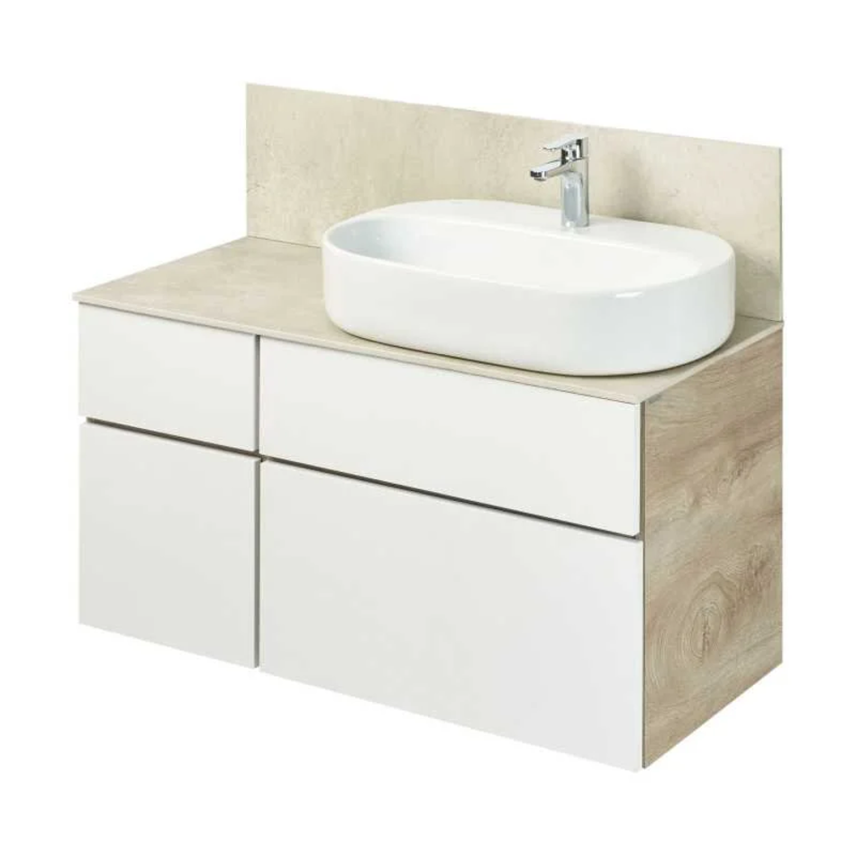 Тумба с раковиной Акватон Мишель 100 см подвесная, цвет дуб эндгрейн/белый, столешница керамогранит, 1A2773K3MIX40