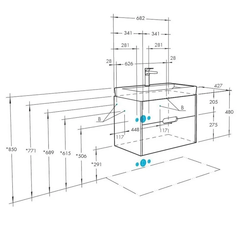 Раковина (ВxШxГ, мм): 170 x 705 x 450