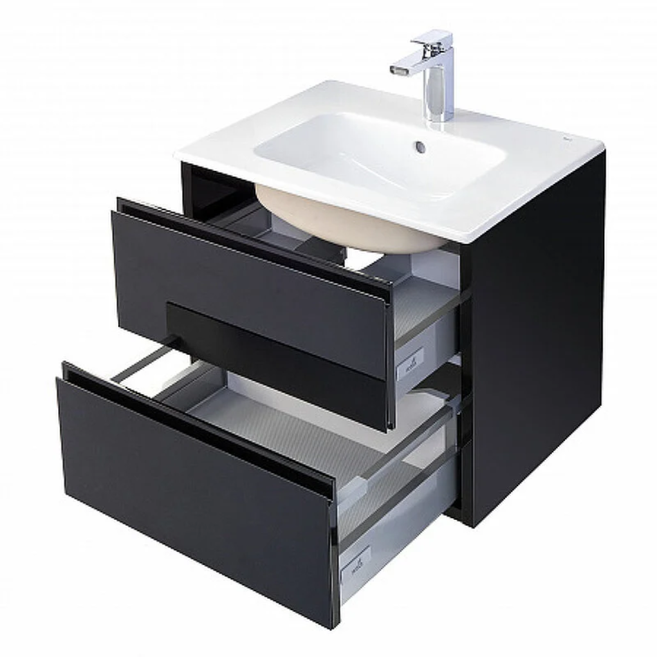 Тумба с раковиной Акватон Римини New 60 см, черный глянец, 1A2266K1RN950