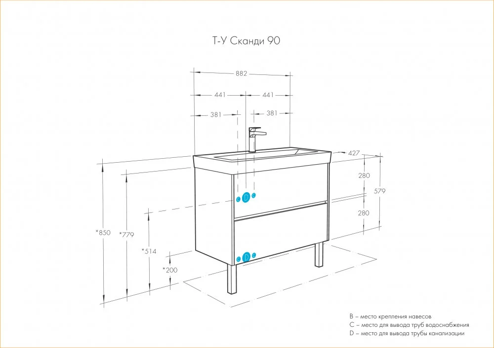 Тумба Сканди 90 выполнена в популярном минималистичном скандинавском стиле. Корпус тумбы выполнен из влагостойкой ЛДСП в декоре натурального дерева, а фасады в белой глянцевой покраске. Конструктивно тумба состоит из 2 вместительных ящиков, установленных на направляющие с интегрированной системой push-to-open для комфортного использования. На тумбе нет выступающих деталей и фурнитуры, открытие ящиков реализовано нажатием на фасад. Тумба комплектуется белоснежной раковиной Адриана от бренда Santek. Тумбу по желанию можно использовать в двух вариантах: как подвесную или дополнительно приобрести опоры
