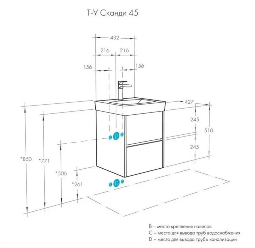 Тумба с раковиной Акватон Сканди 45 см подвесная, белый, 1A2516K0SD010
