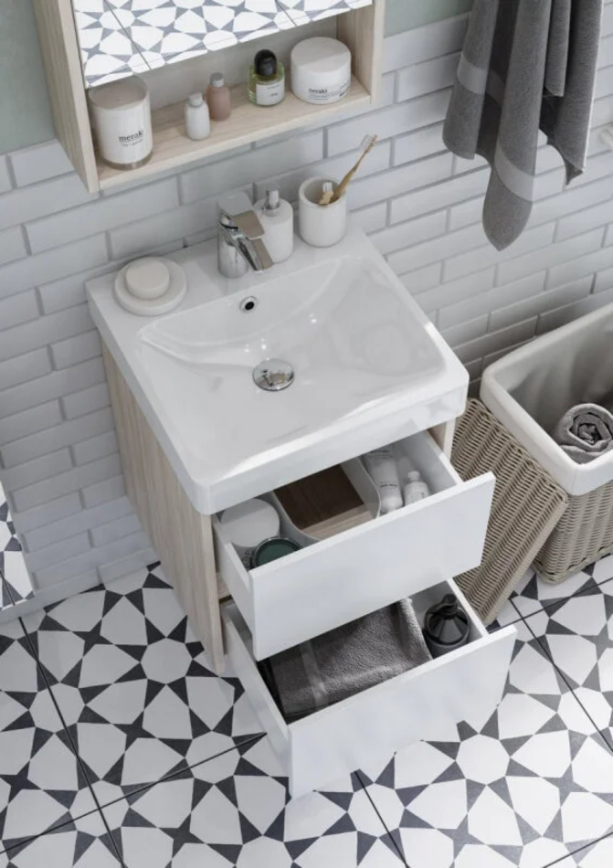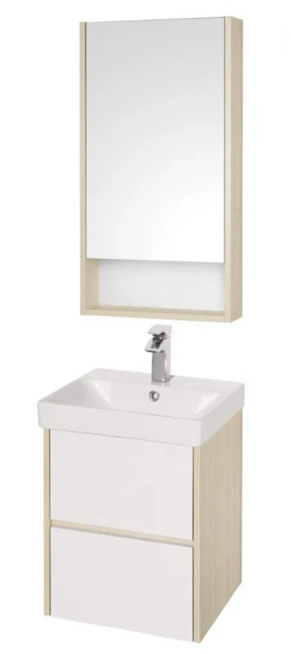 Тумба с раковиной Акватон Сканди 45 см, подвесная, белый/дуб верона, 1A2516K0SDB20