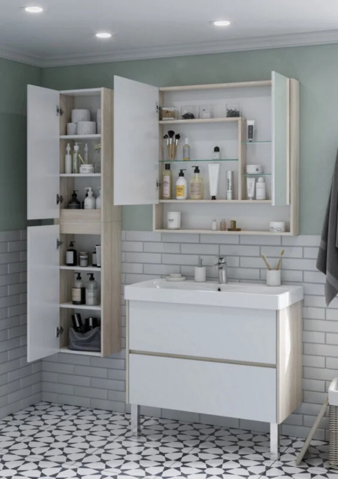 Тумба с раковиной Акватон Сканди 90 см, подвесная, белый/дуб верона, 1A2519K0SDB20
