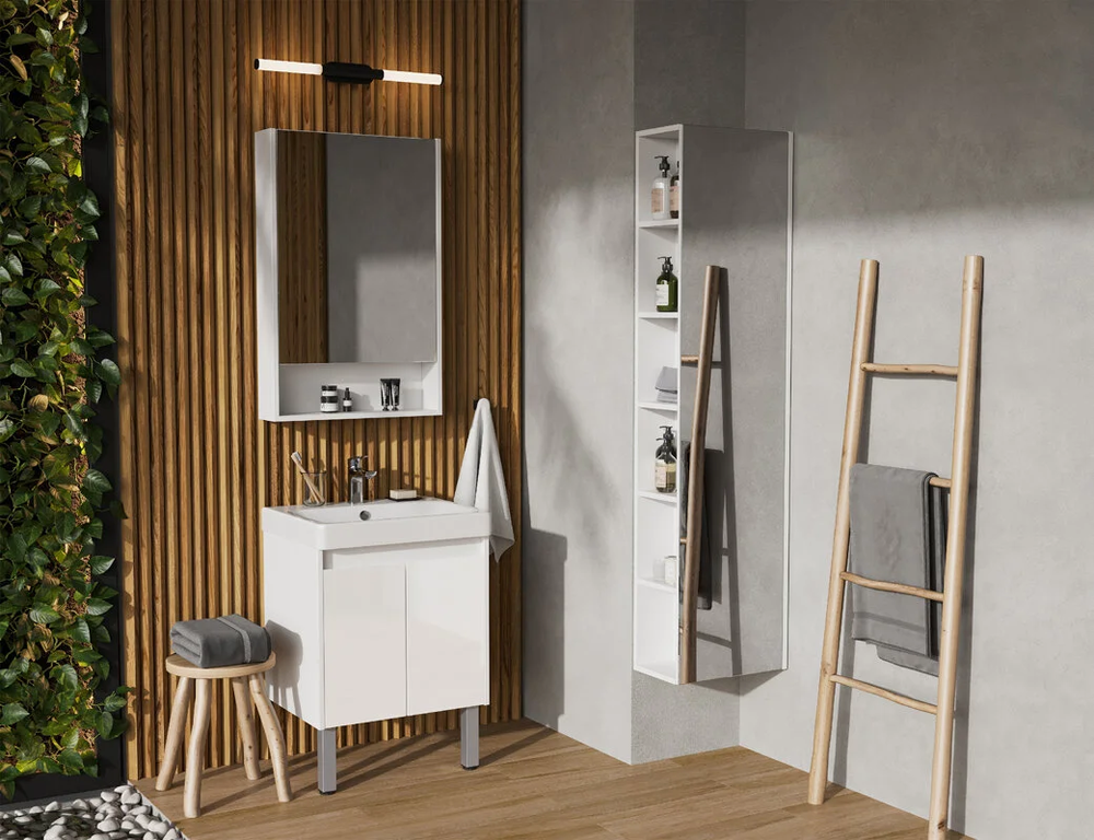 Тумба с раковиной Акватон Сканди Doors, 1A2788K0SD010, 55 см подвесная, цвет белый глянец/белый матовый