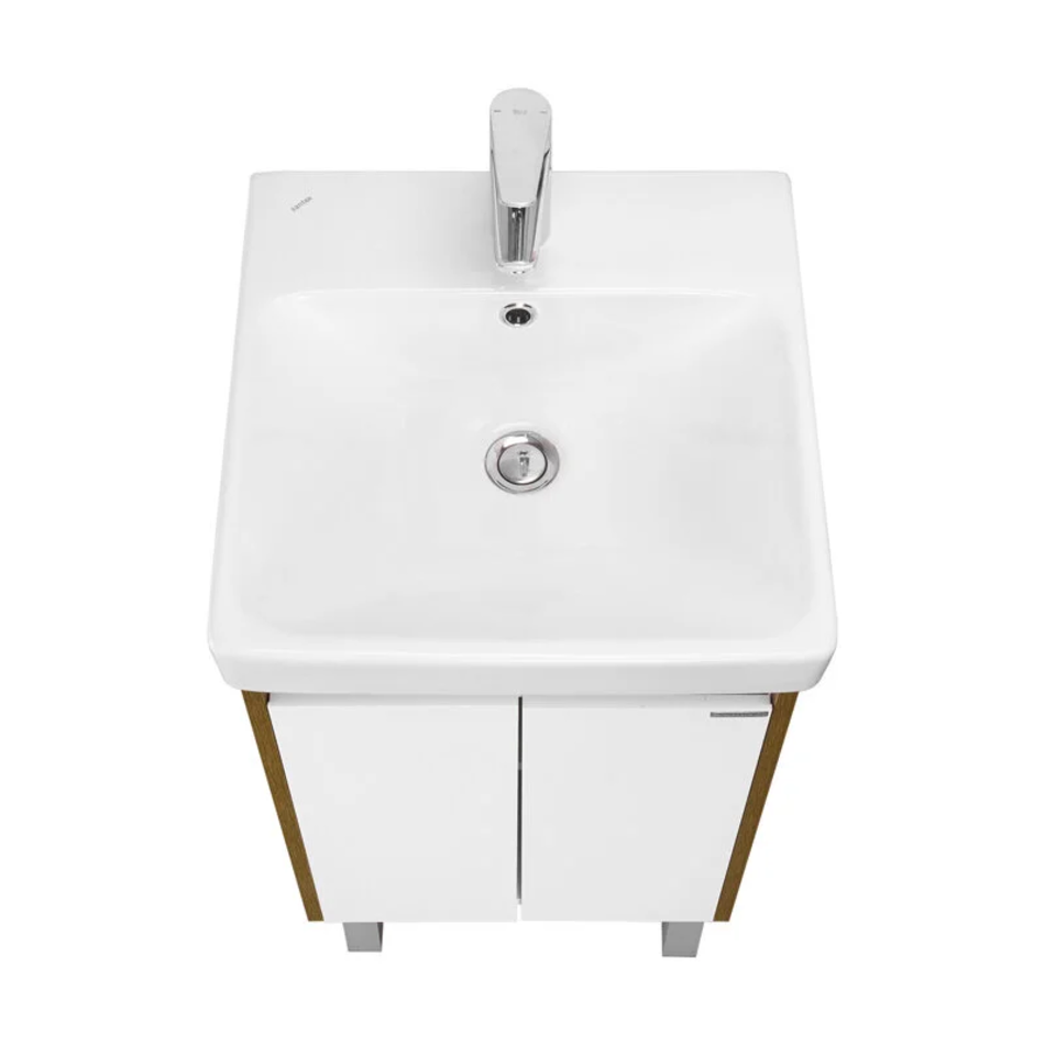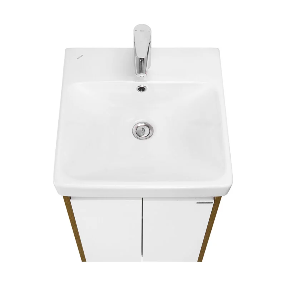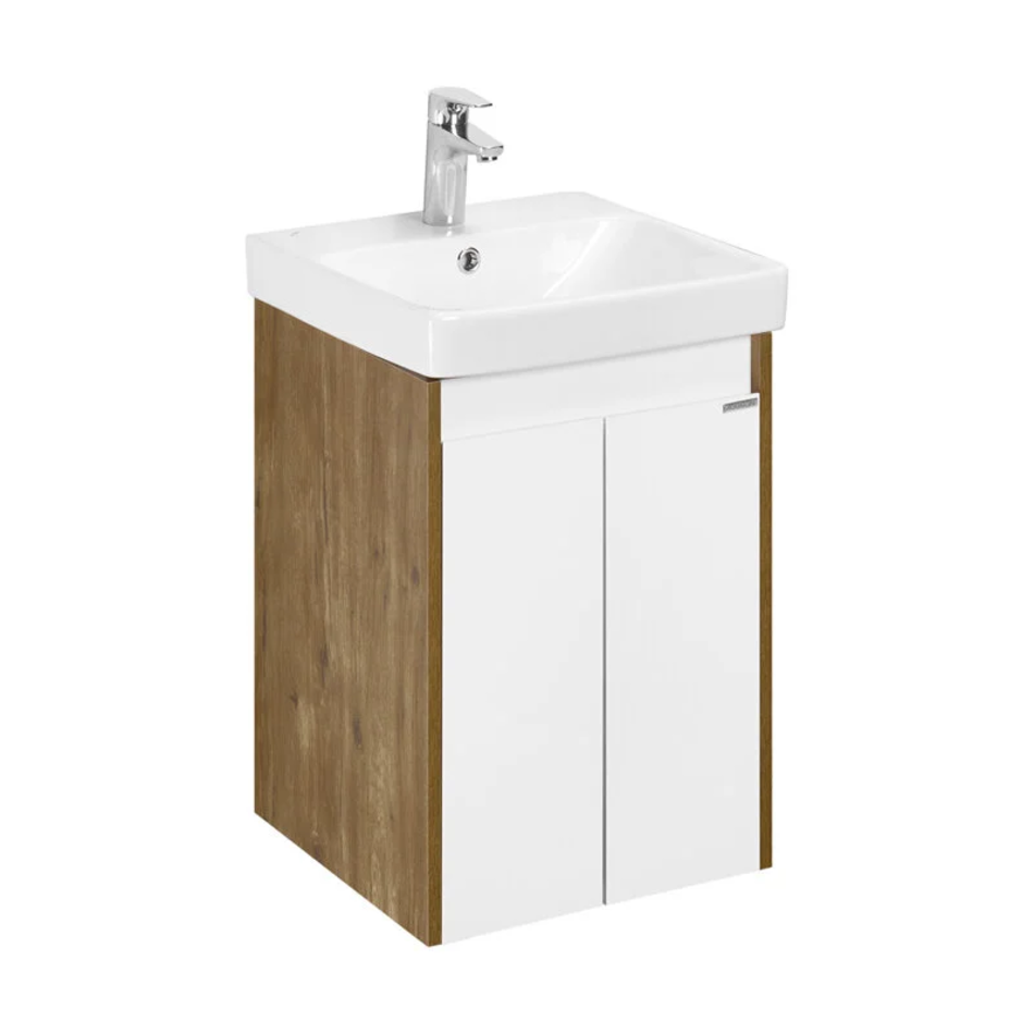 Тумба с раковиной Акватон Сканди Doors 55 см подвесная, белый глянец/дуб рустикальный, 1A2788K0SDZ90