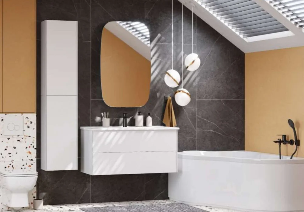 Тумба с раковиной Акватон Сохо 100 см подвесная, белый глянцевый, 1A2582K2AJ010