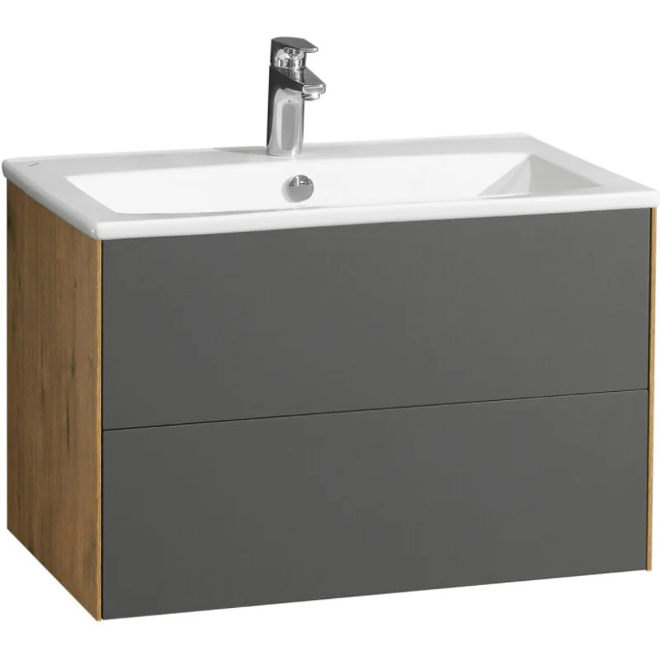 Тумба с раковиной Акватон Сохо 75 см подвесная, дуб веллингтон/графит софт, 1A2581K1AJA00