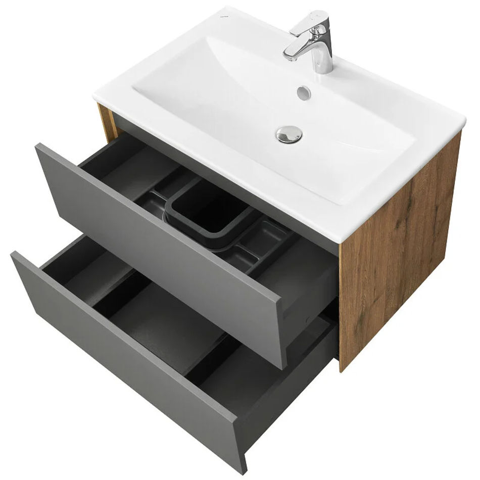 Тумба под раковину Акватон Сохо 75 см подвесная, дуб веллингтон/графит софт, 1A258101AJA00
